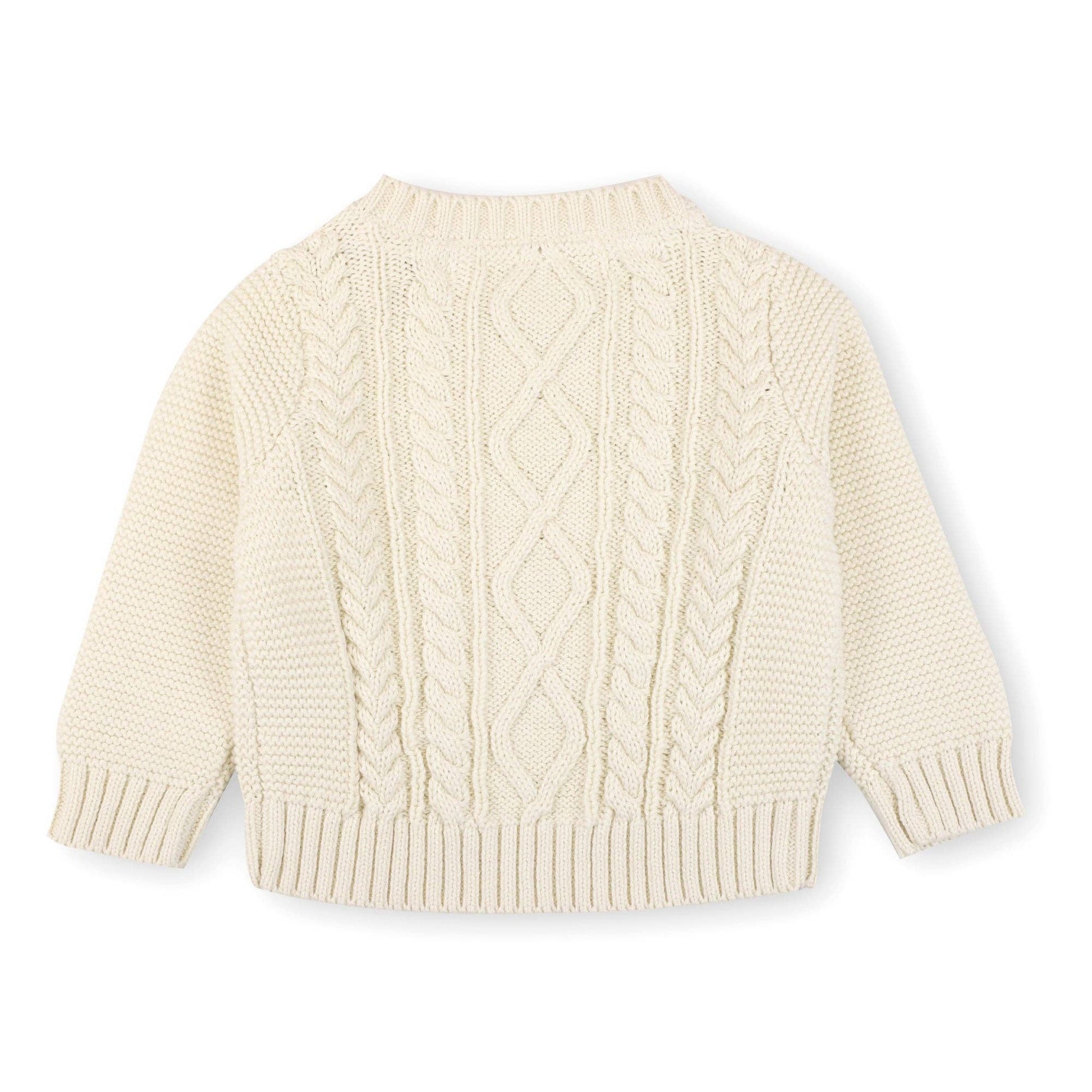 Soft, lofty organic cotton will keep your little one snuggly and photo ready. Our sophisticated two piece set features an adorable cable knit pullover sweater and matching leggings. The sweater top has faux horn buttons at the shoulder for easy dressing of baby. Perfect for a gift (although if you keep it for yourself, we'll understand). * 100% Organic Cotton, exclusive of trims. * Set includes: long sleeve cable sweater, sweater legging. * Not intended for sleepwear. * Machine washable.
